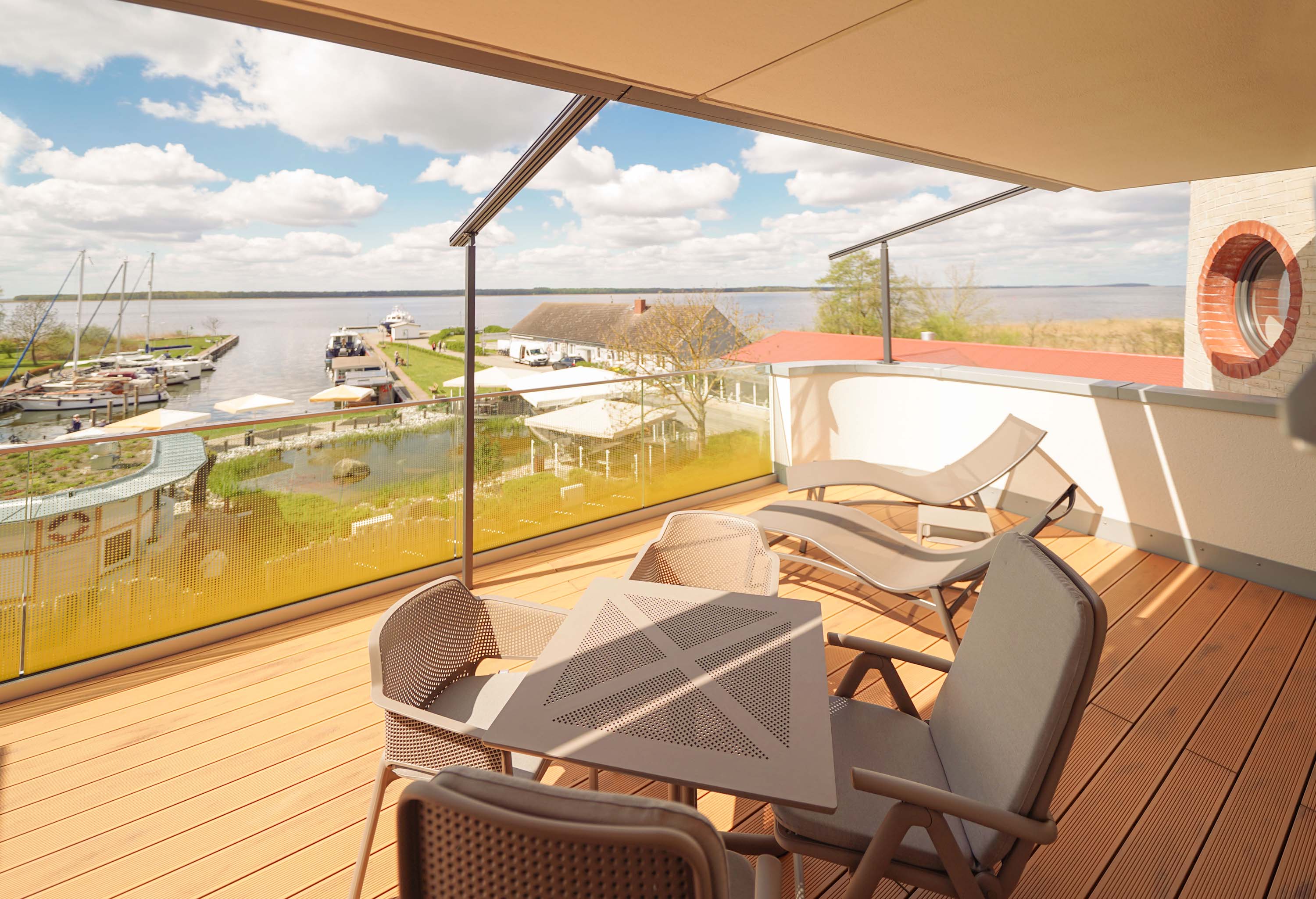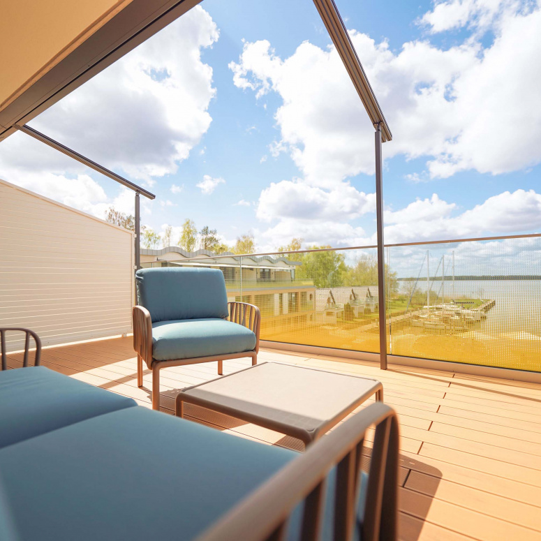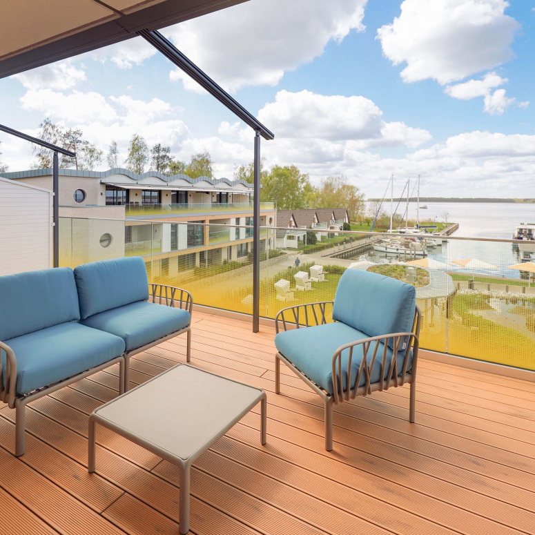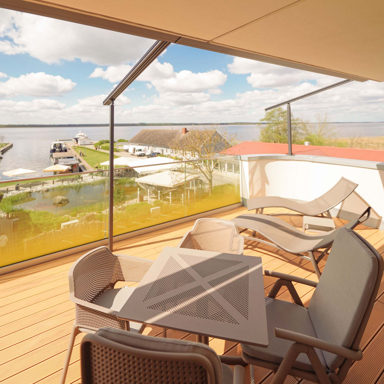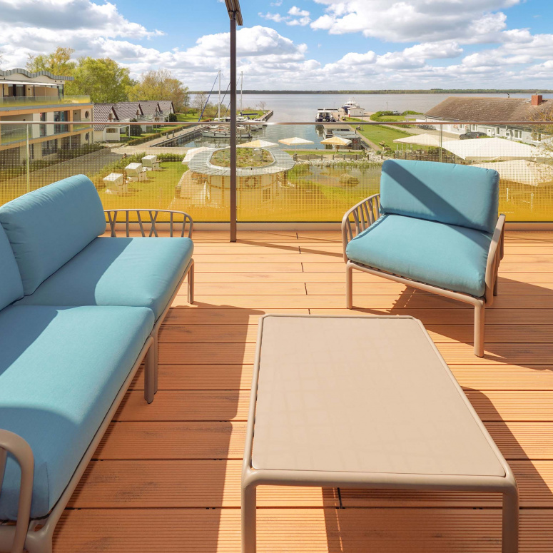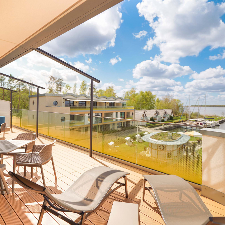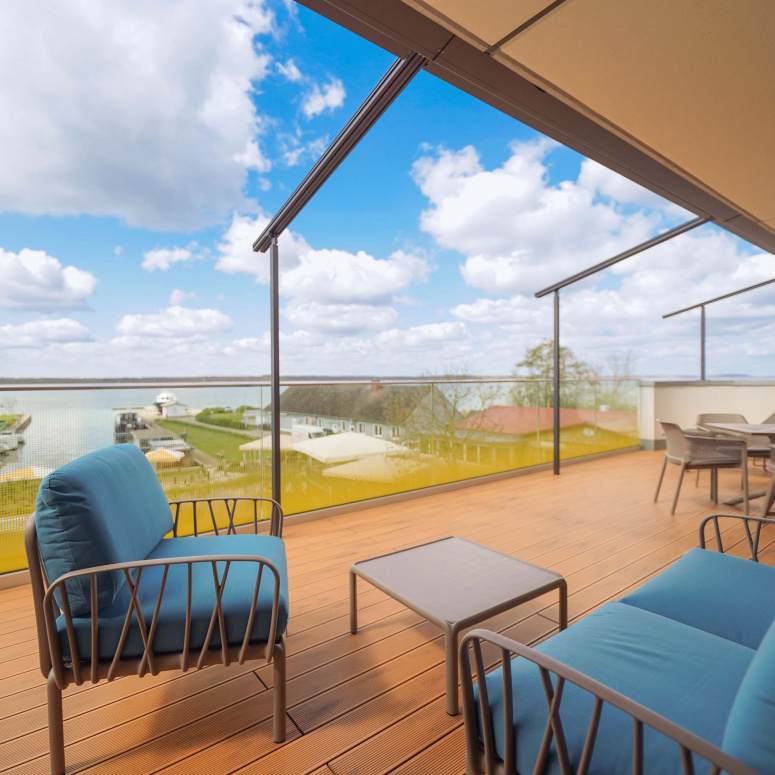 Unser kleiner Fitnessraum im Leuchtturm ermöglicht Ihnen eine Extraportion Training am Tag. Heizen Sie in der Turmsauna Ihr Urlaubsfeeling an und entspannen Sie auf dem großen Dachgarten – unserem „Sonnendeck“. Mit Bademantel im Liegestuhl sitzend können Sie von hier traumhafte Rundum-Blicke in die Natur genießen und die Zeit mit der Sonne im Peenestrom versinken lassen.