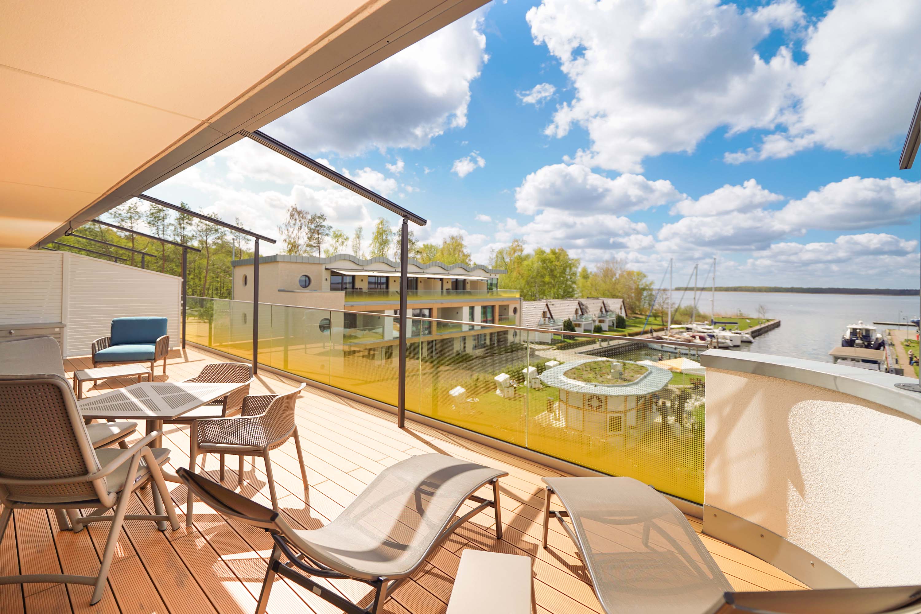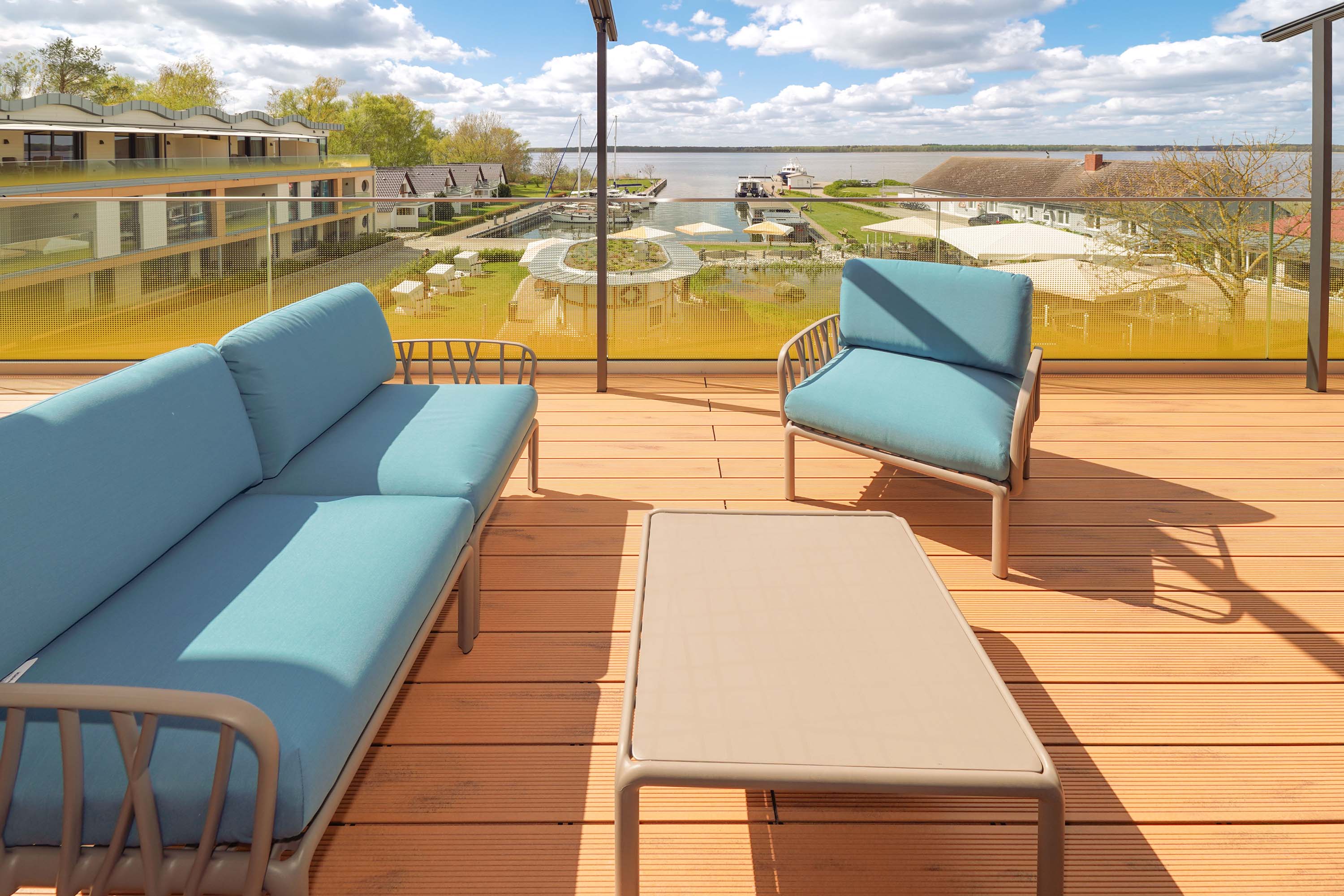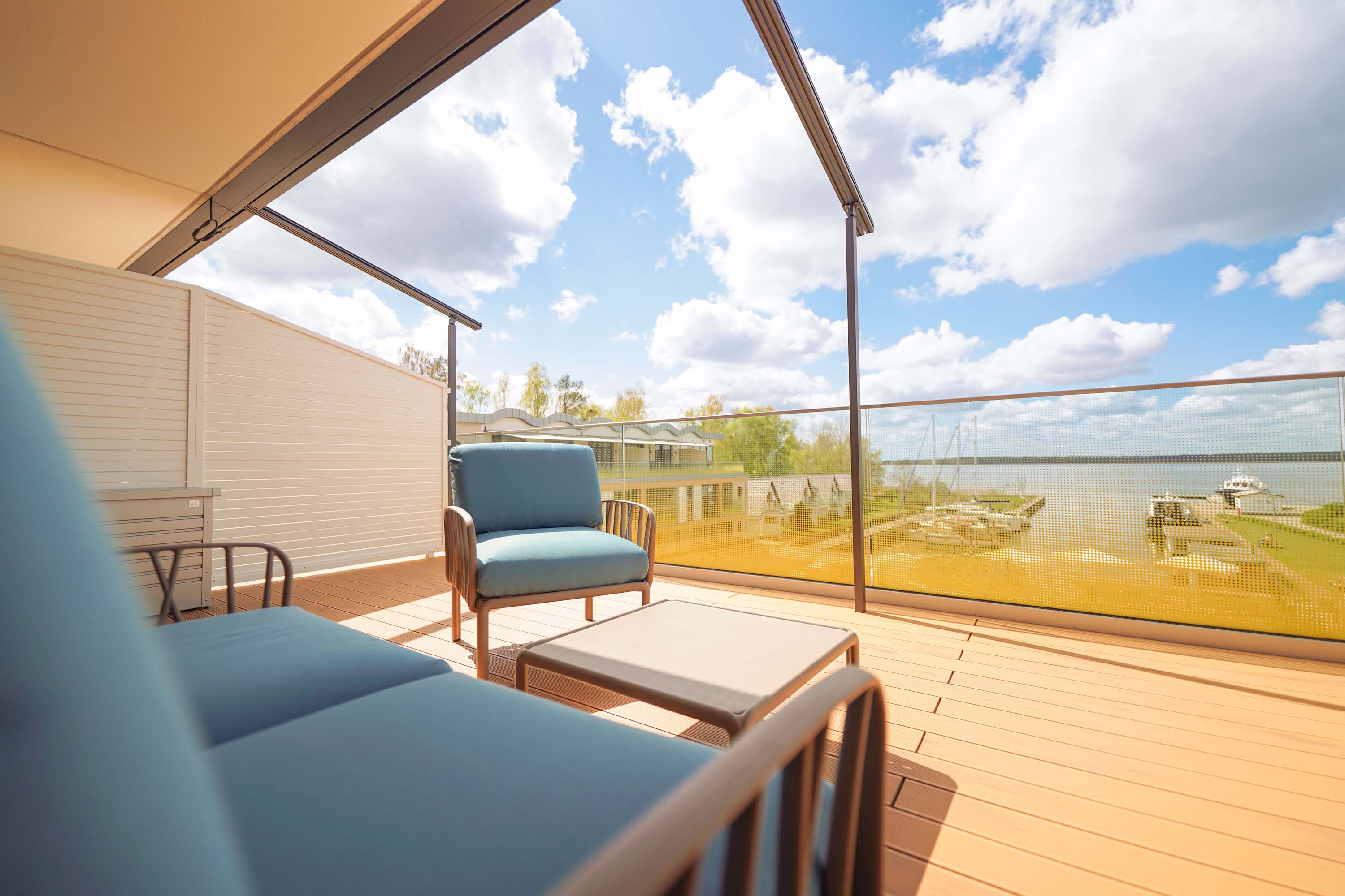 Unser kleiner Fitnessraum im Leuchtturm ermöglicht Ihnen eine Extraportion Training am Tag. Heizen Sie in der Turmsauna Ihr Urlaubsfeeling an und entspannen Sie auf dem großen Dachgarten – unserem „Sonnendeck“. Mit Bademantel im Liegestuhl sitzend können Sie von hier traumhafte Rundum-Blicke in die Natur genießen und die Zeit mit der Sonne im Peenestrom versinken lassen.