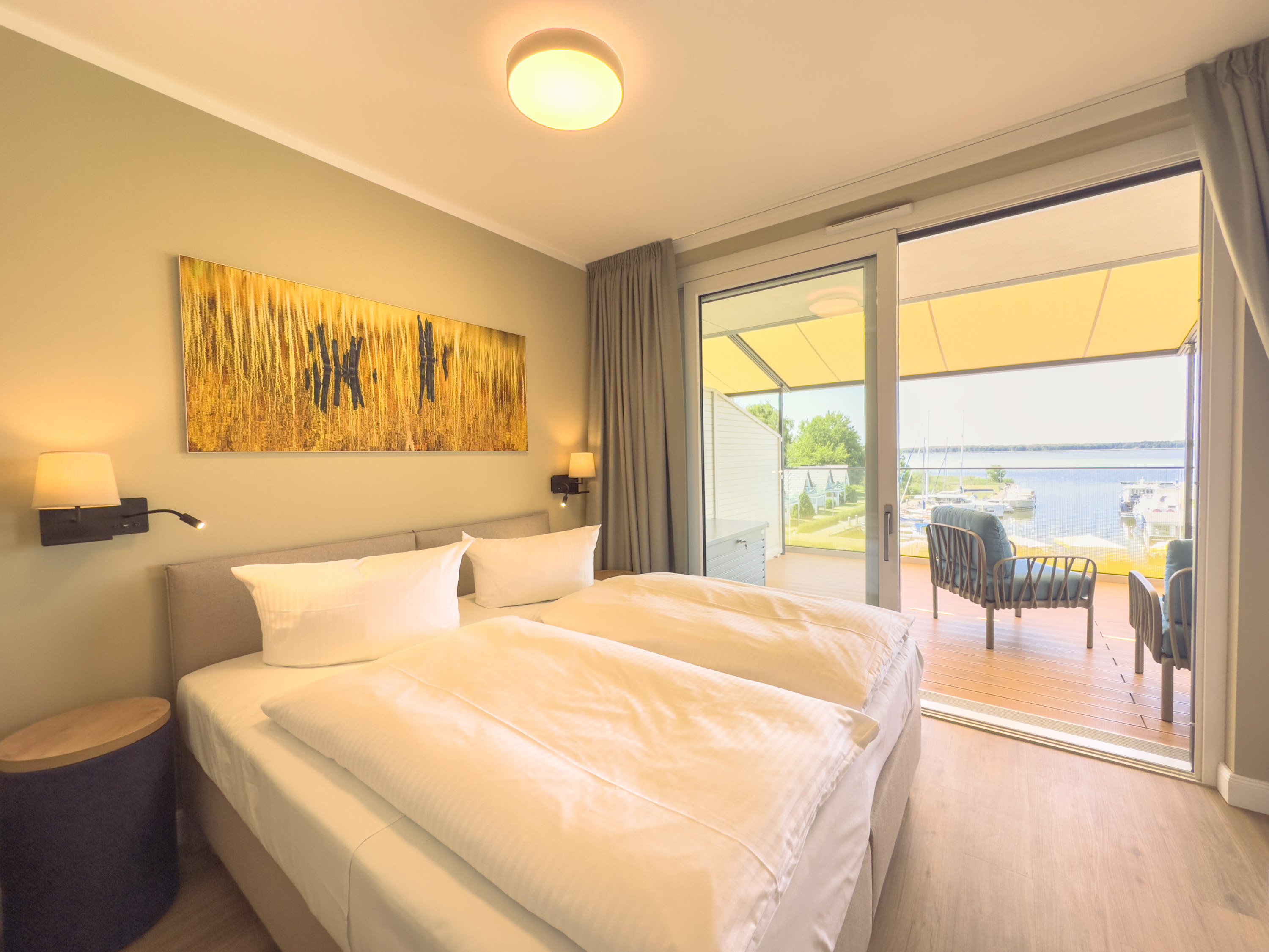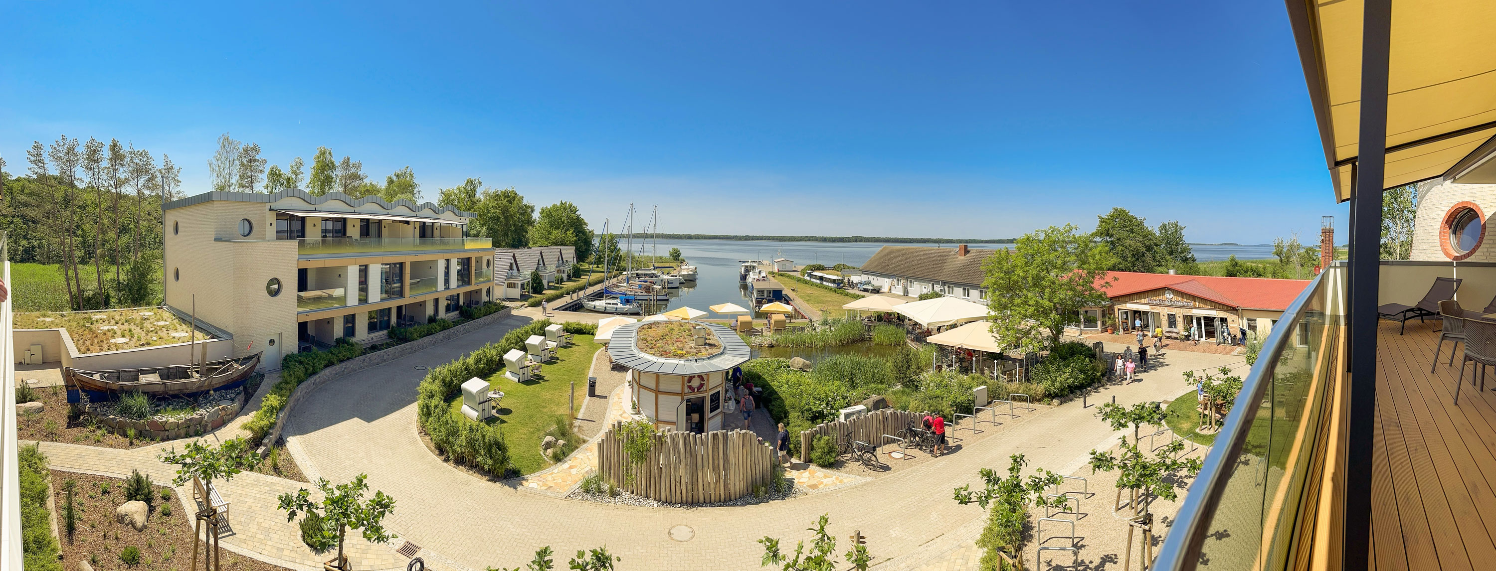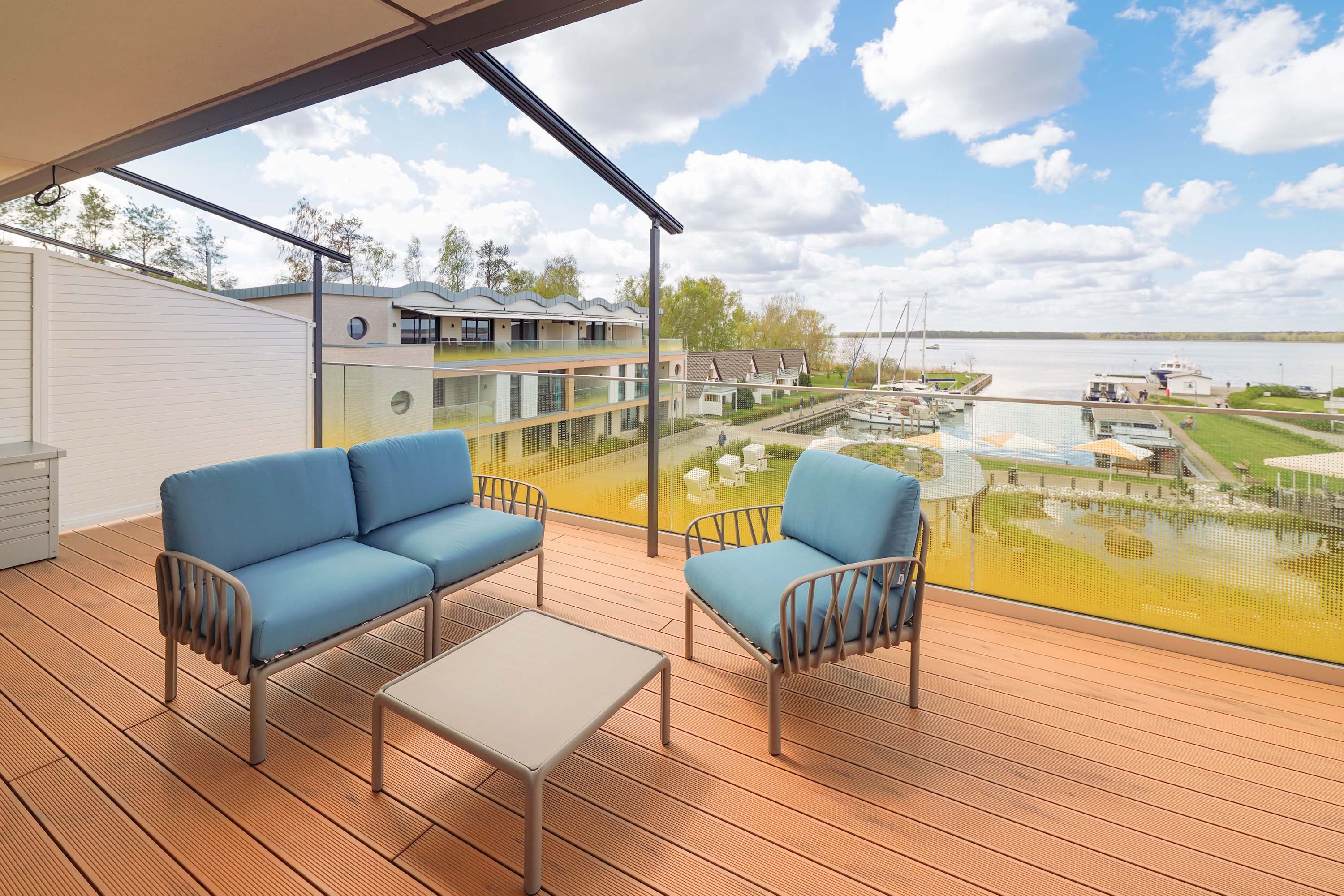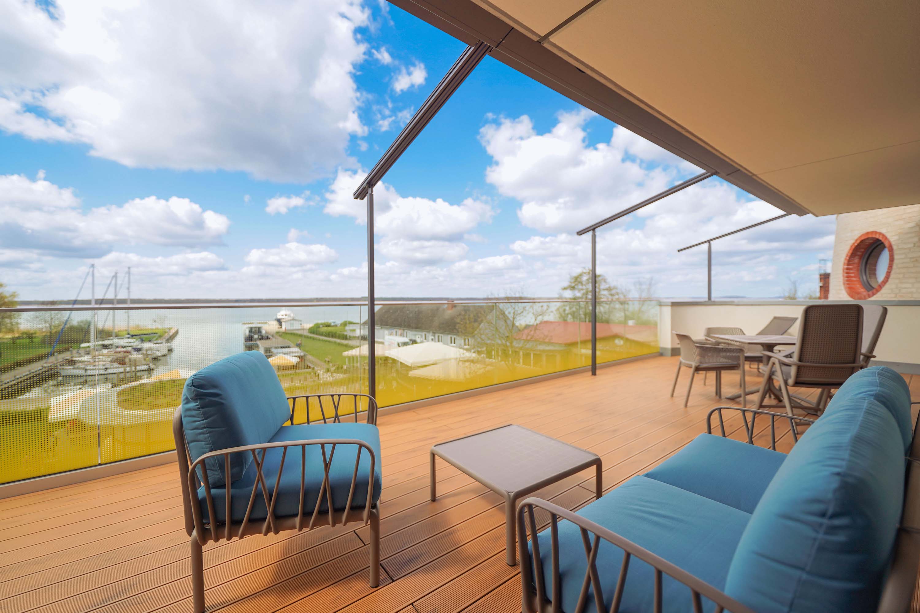 Unser kleiner Fitnessraum im Leuchtturm ermöglicht Ihnen eine Extraportion Training am Tag. Heizen Sie in der Turmsauna Ihr Urlaubsfeeling an und entspannen Sie auf dem großen Dachgarten – unserem „Sonnendeck“. Mit Bademantel im Liegestuhl sitzend können Sie von hier traumhafte Rundum-Blicke in die Natur genießen und die Zeit mit der Sonne im Peenestrom versinken lassen.