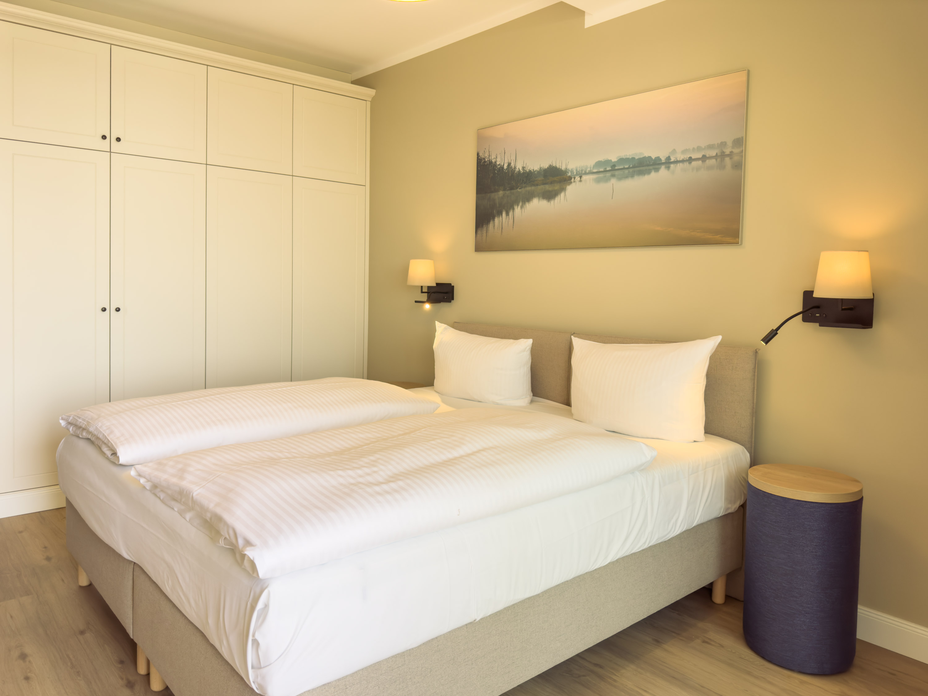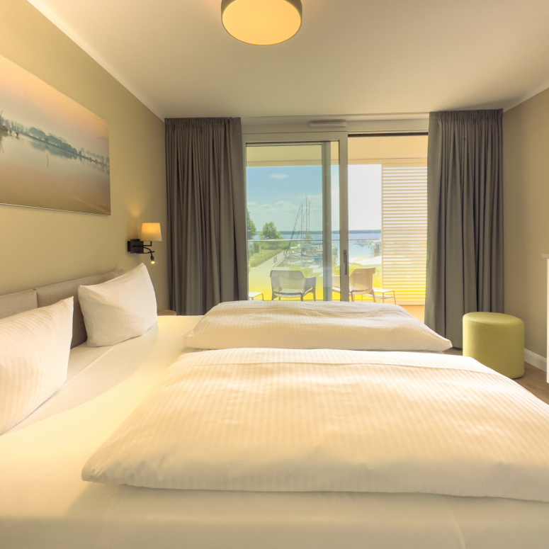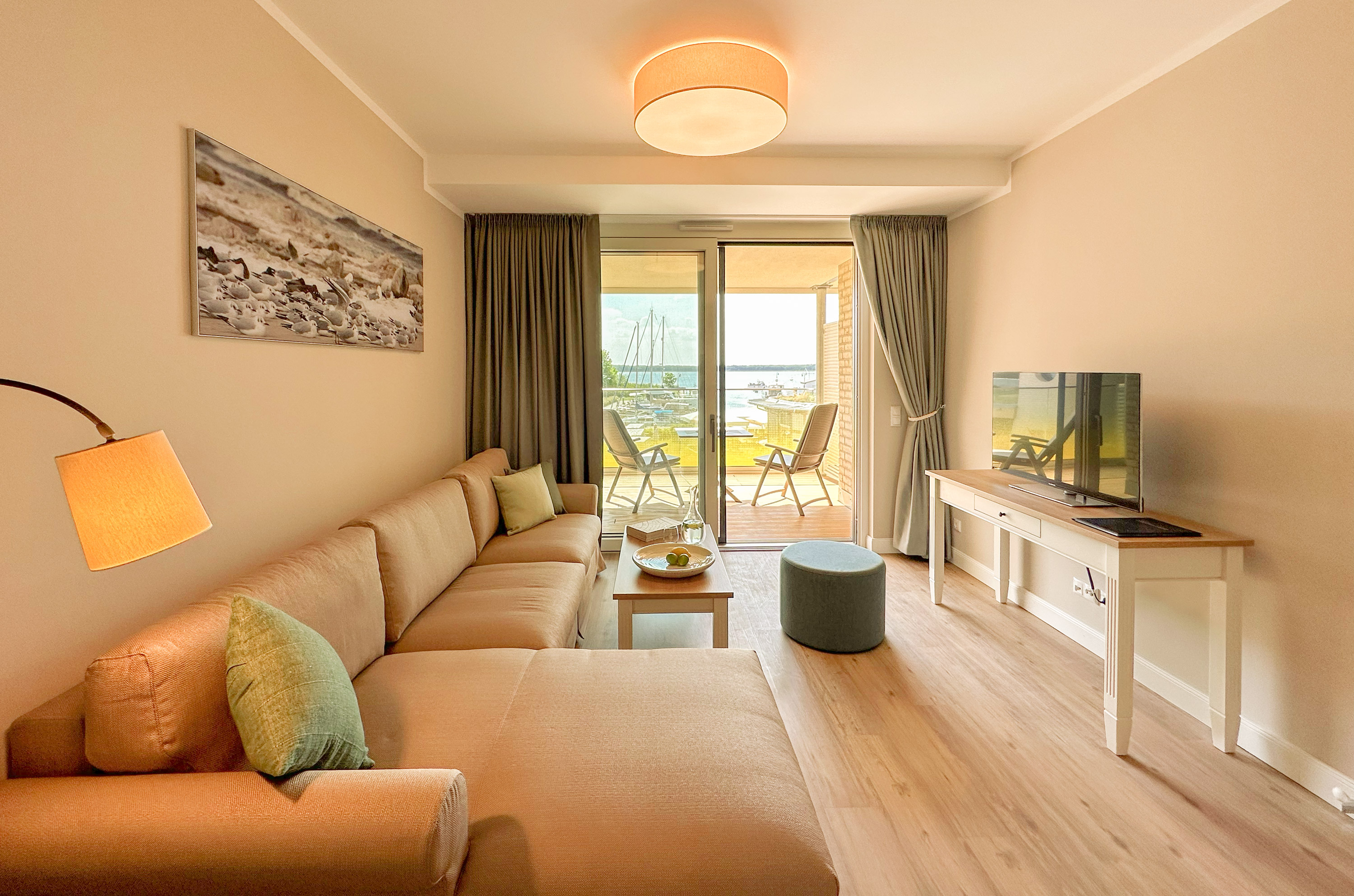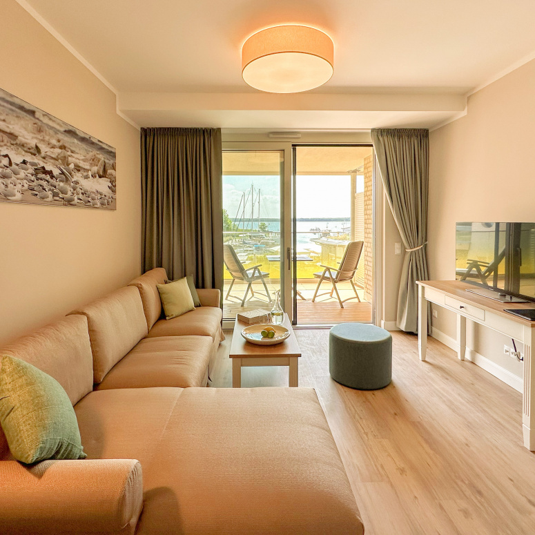 Die Matrosen Suite unserer 2023 eröffneten Appartements „Zum Leuchtturm“ bietet reichlich Platz für zwei Personen. Neben einer kleinen Küchenzeile und einem Bad mit Dusche und WC ist sie mit gemütlichen Sitzgelegenheiten, Panoramafenstern, W-Lan und einem Fernseher ausgestattet. Das Schlafzimmer mit Wohlfühlatmosphäre garantiert süße Träume. Die meiste Zeit werden Sie wahrscheinlich auf dem Balkon verbringen – beim Ausblick auf das quirlige Treiben im idyllischen Hafen.