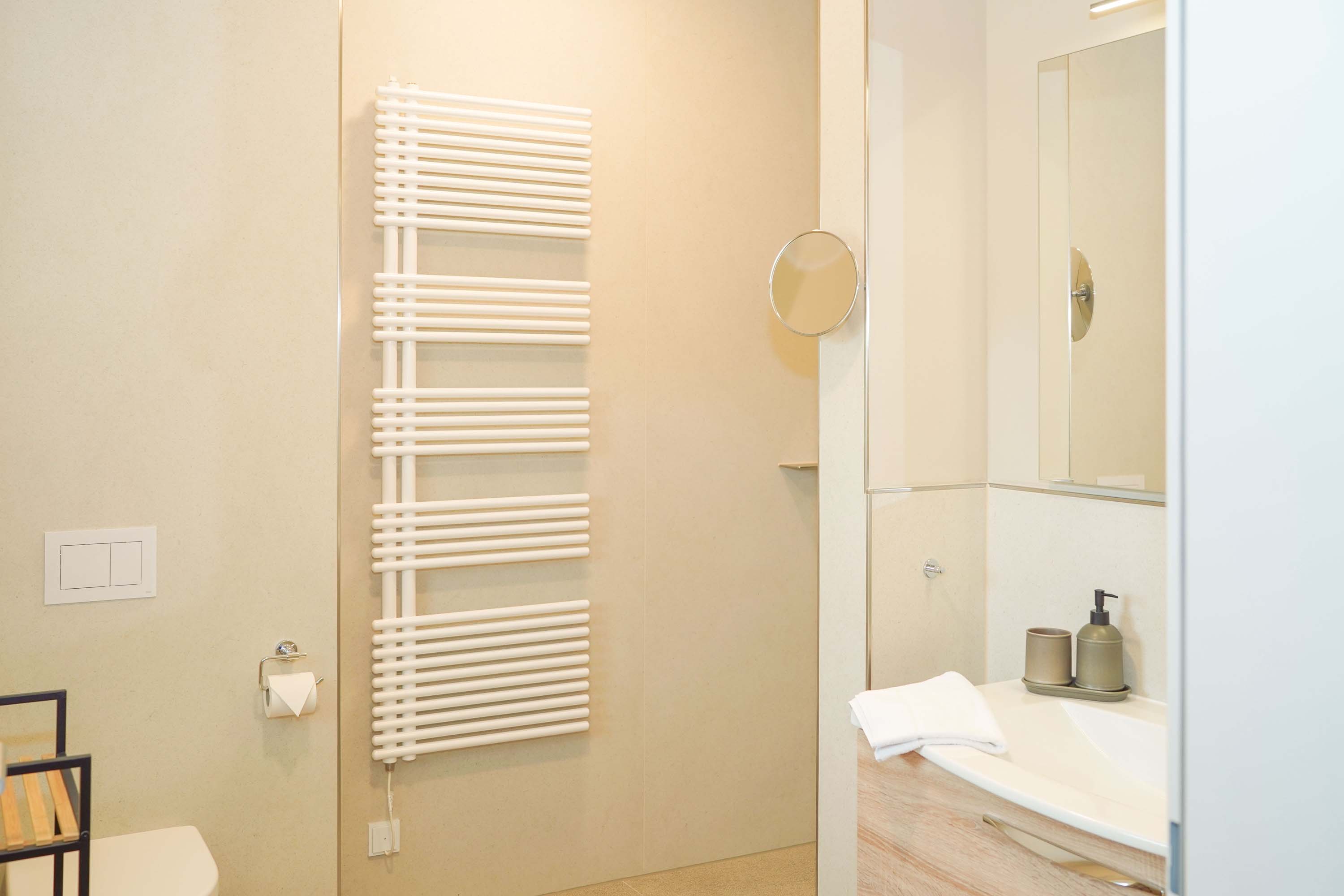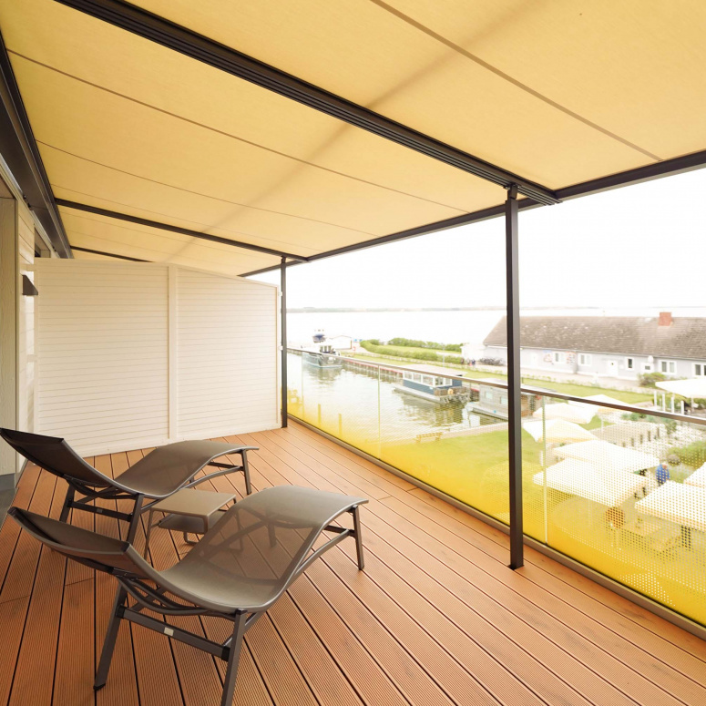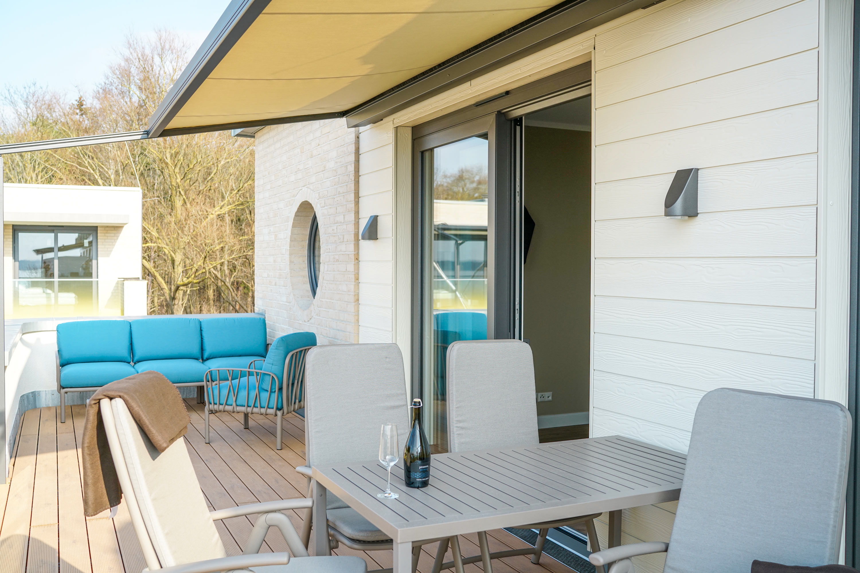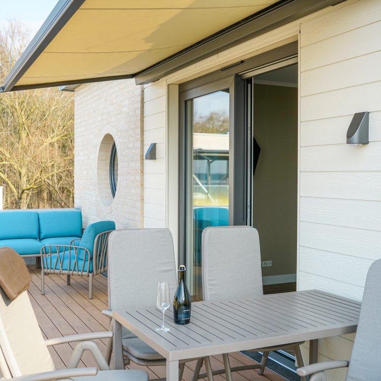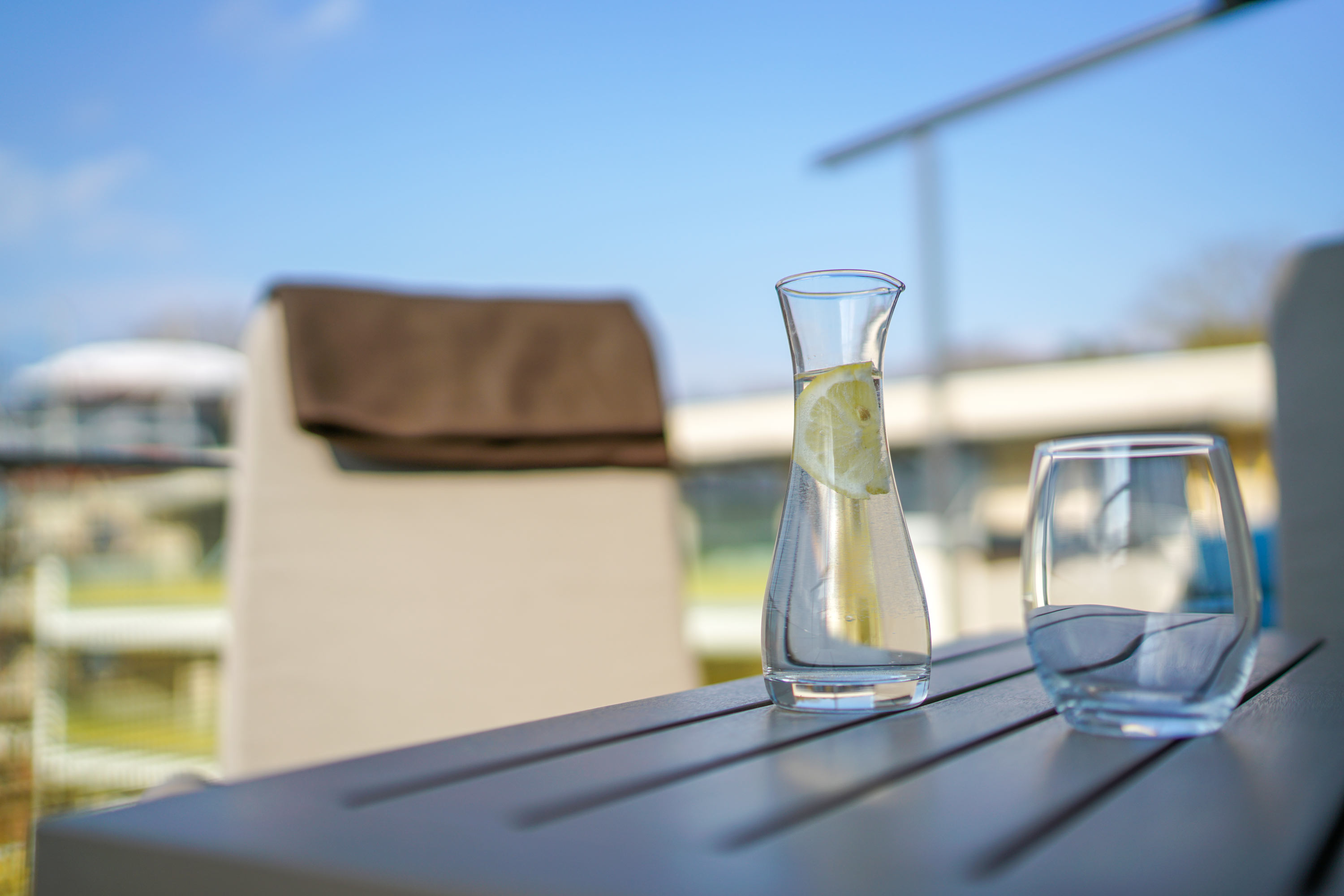 Für eine entspannte Heißzeit fahren Sie per Fahrstuhl auf das Dach unseres Appartement-Hauses. Hier können Sie gemütlich in einer finnischen Sauna entspannen. Dabei heizt der Ausblick auf Hafen und Peenestrom Ihre gute Laune an. Für einen erfrischenden Abschluss sorgt unsere Außendusche auf der 40 qm großen Dachterrasse. Versteckt vor fremden Blicken, haben Sie freie Sicht auf die nahen Wälder und genießen mit jedem Atemzug die reine Natur. Wenn Sie noch mehr schwitzen wollen: Im schräg gegenüberliegenden „Leuchtturm“ ermöglicht Ihnen ein kleiner Fitnessraum eine Extraportion Training am Tag.