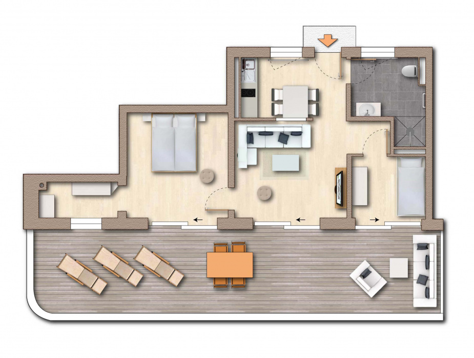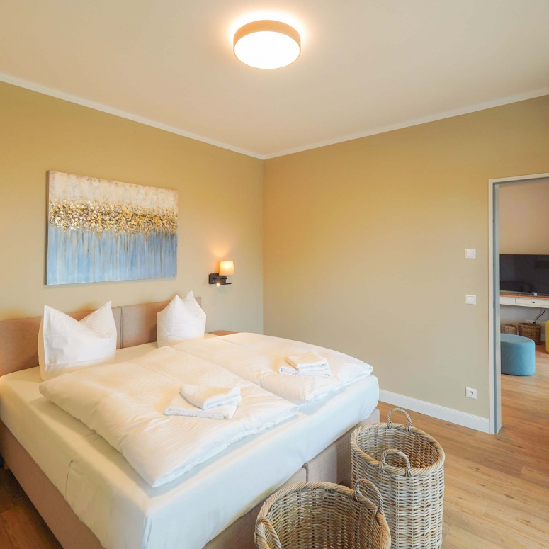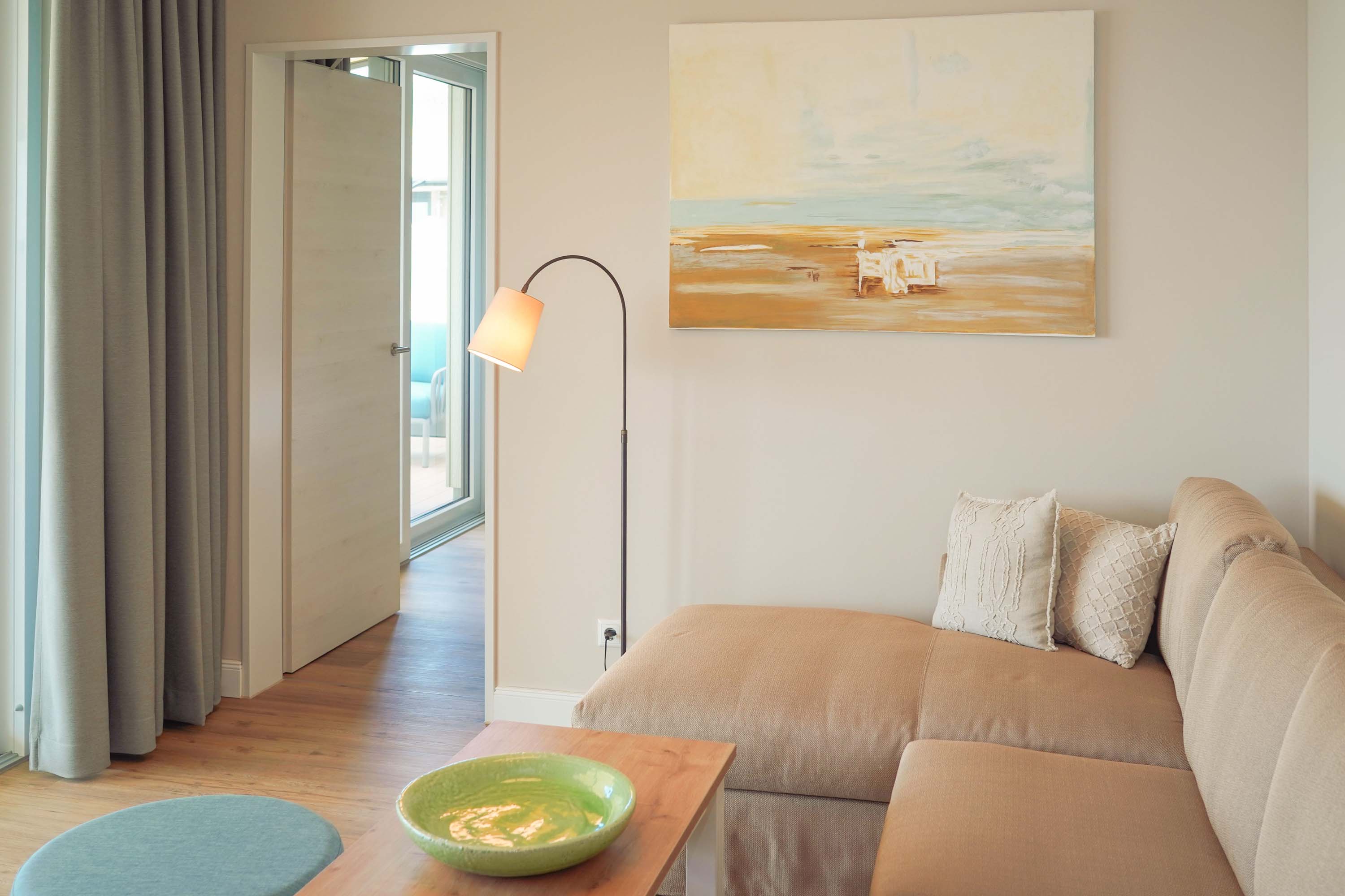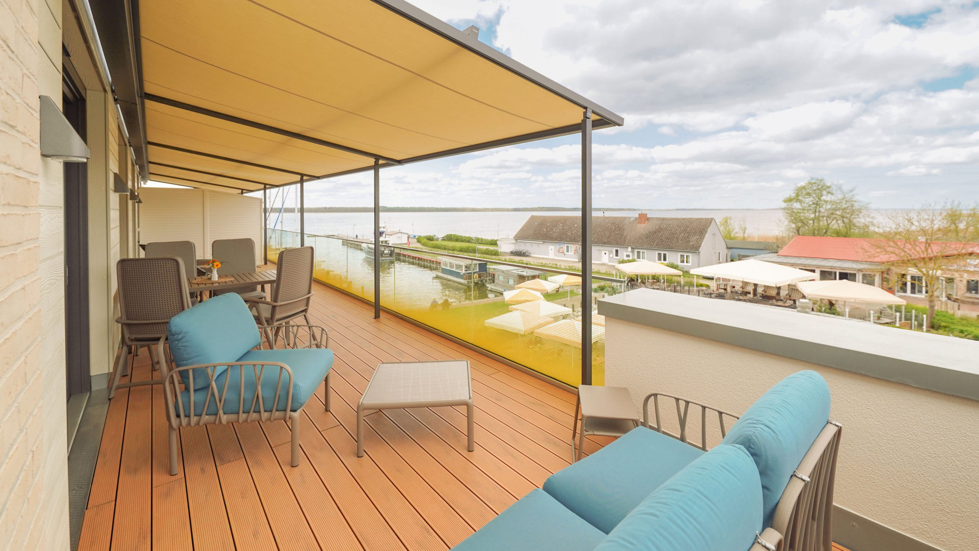 Die Panorama Suite unserer 2023 eröffneten Appartements „Zum Leuchtturm“ bietet reichlich Platz für drei Personen. Neben kleiner Küchenzeile und Bad mit Dusche und WC ist sie mit gemütlichen Sitzgelegenheiten, Panoramafenstern, W-Lan und einem Fernseher ausgestattet. Schlafzimmer mit Wohlfühlatmosphäre garantieren süße Träume. Besonderes Highlight ist die extra große Dachterrasse mit Blick auf den idyllischen Hafen.