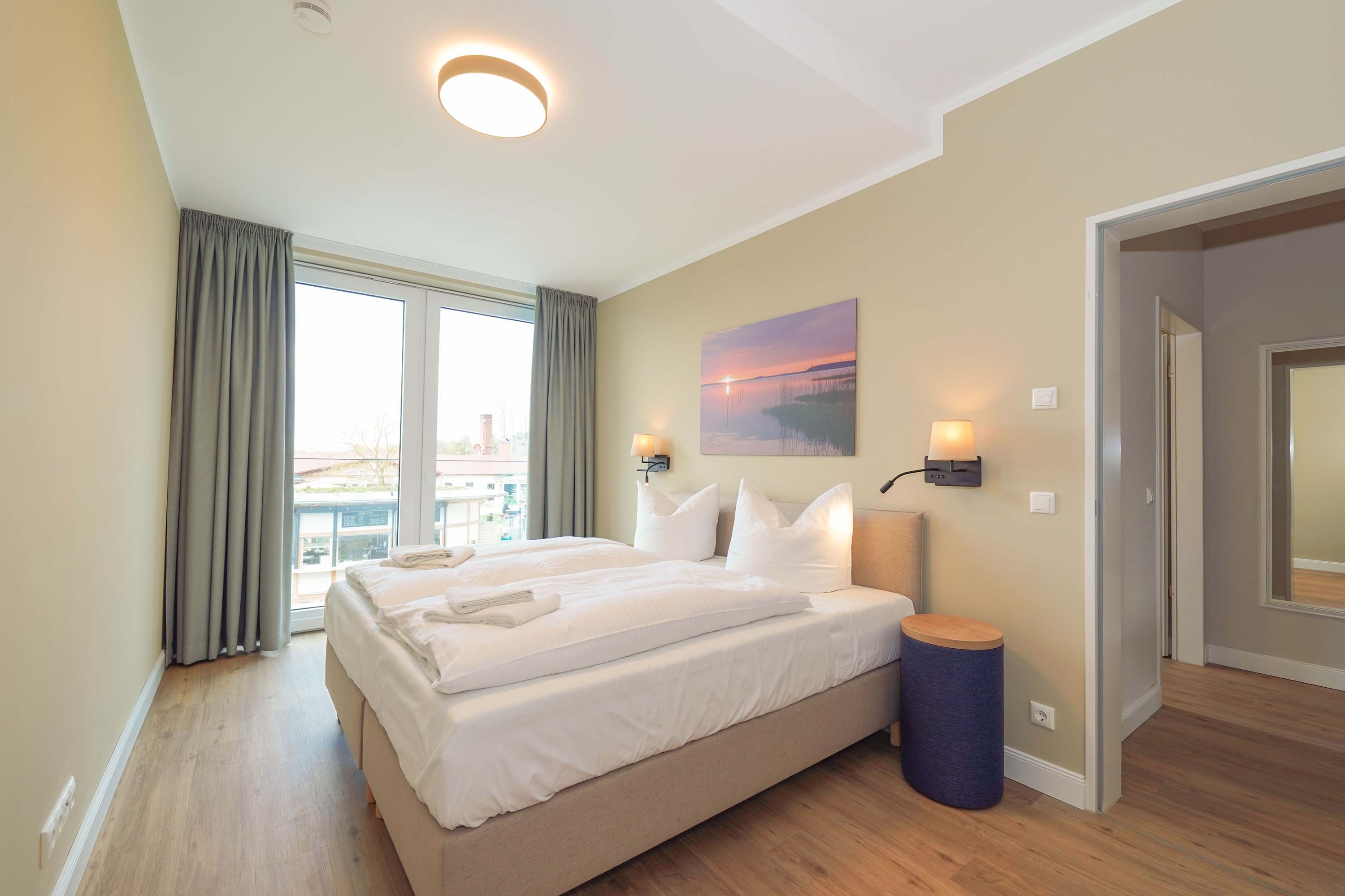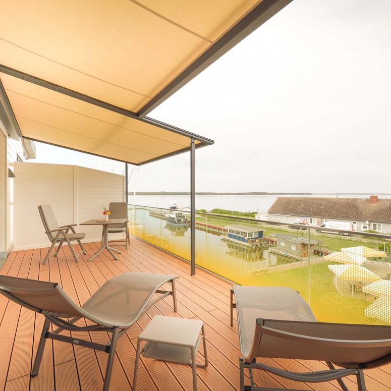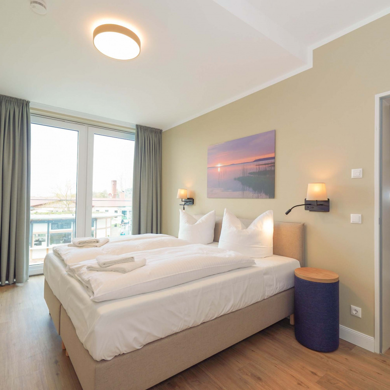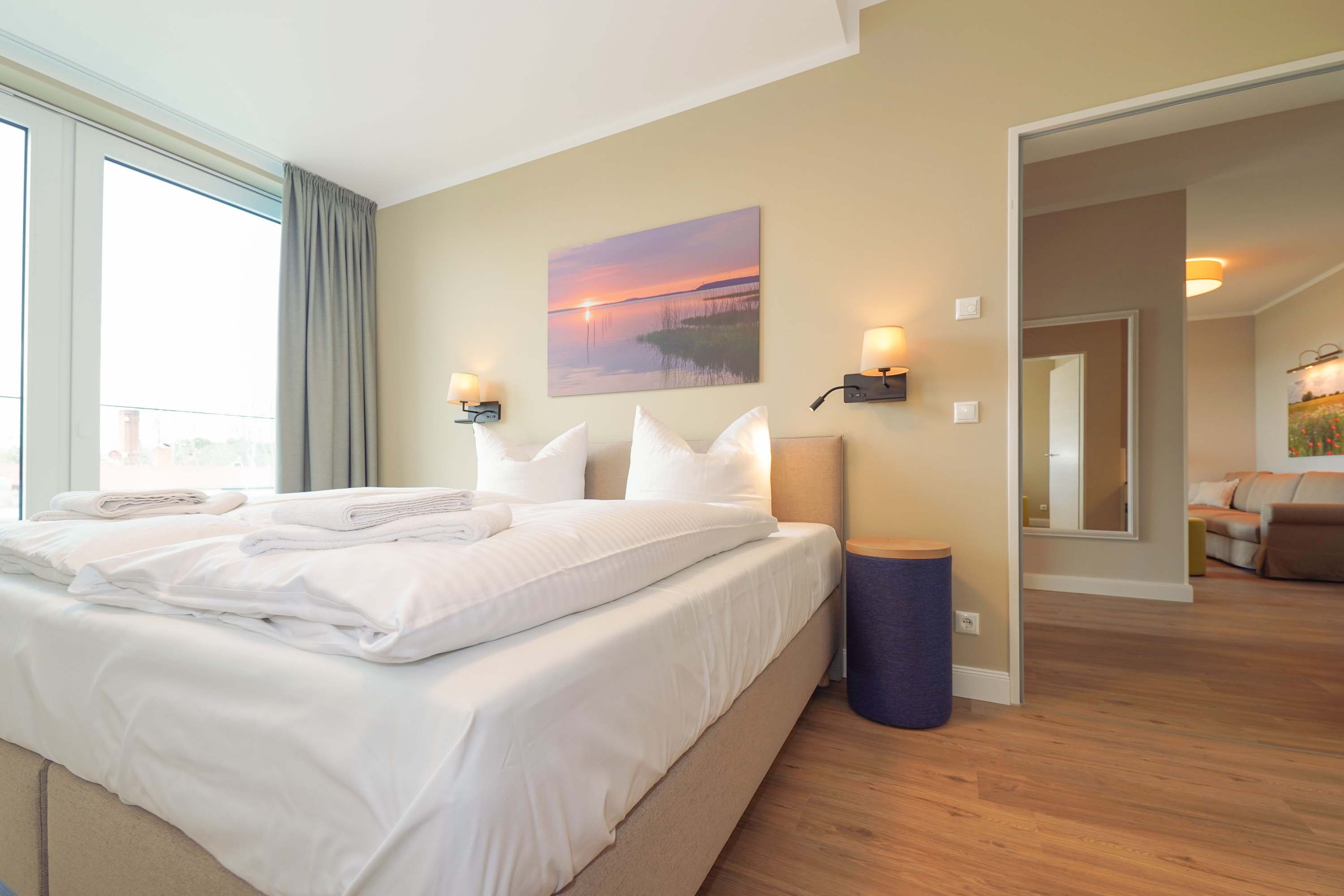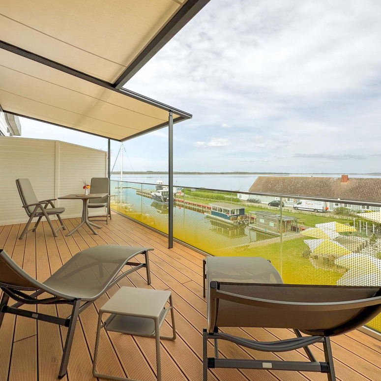 Die Sonnen Suite unserer 2023 eröffneten Appartements „Zum Leuchtturm“ bietet reichlich Platz für zwei Personen. Neben kleiner Küchenzeile und Bad mit Dusche und WC ist sie mit gemütlichen Sitzgelegenheiten, Panoramafenstern, W-Lan und einem Fernseher ausgestattet. Das Schlafzimmer mit Wohlfühlatmosphäre garantiert süße Träume. Besonderes Highlight ist die Dachterrasse mit Blick auf den idyllischen Hafen.