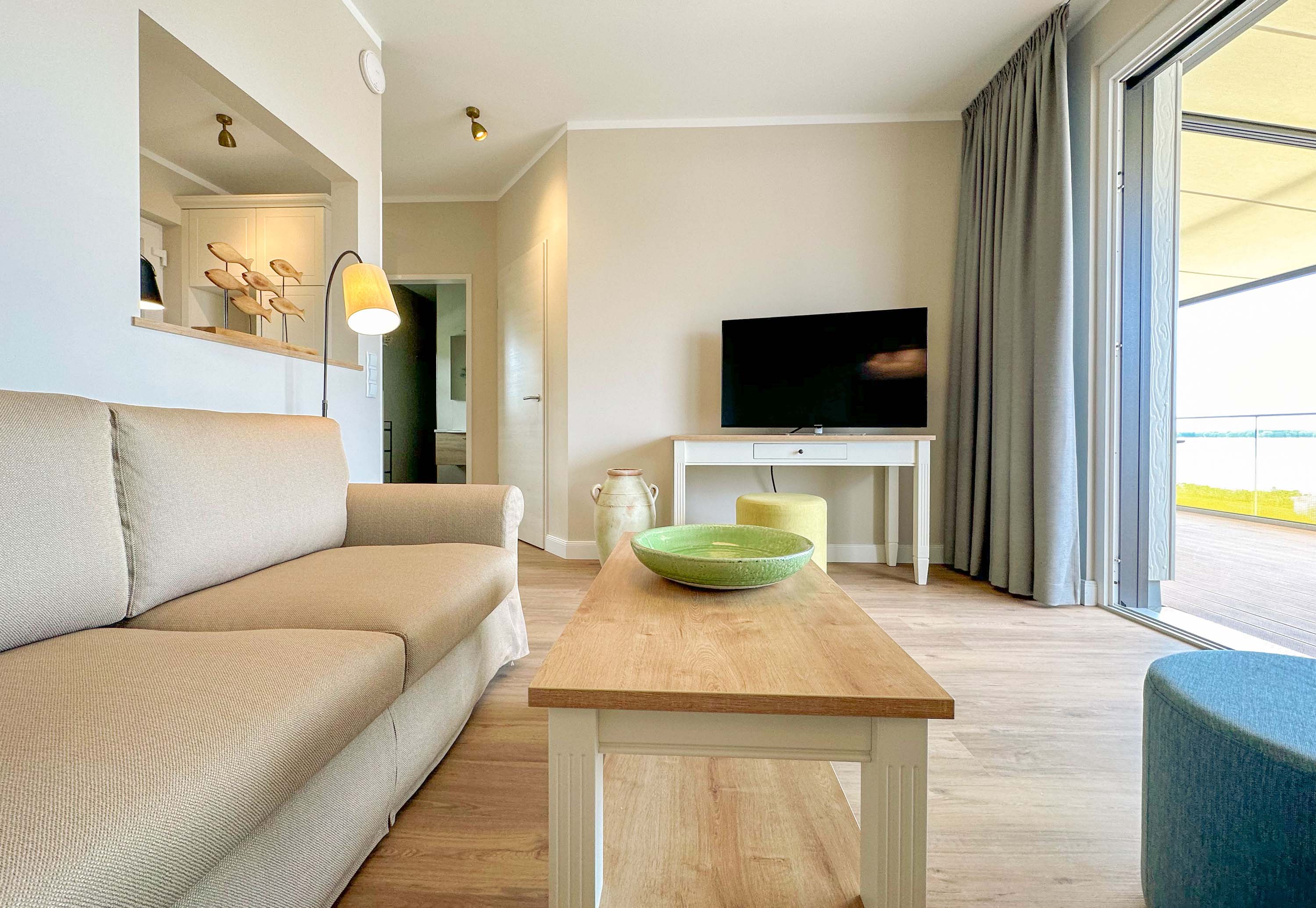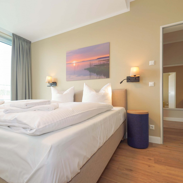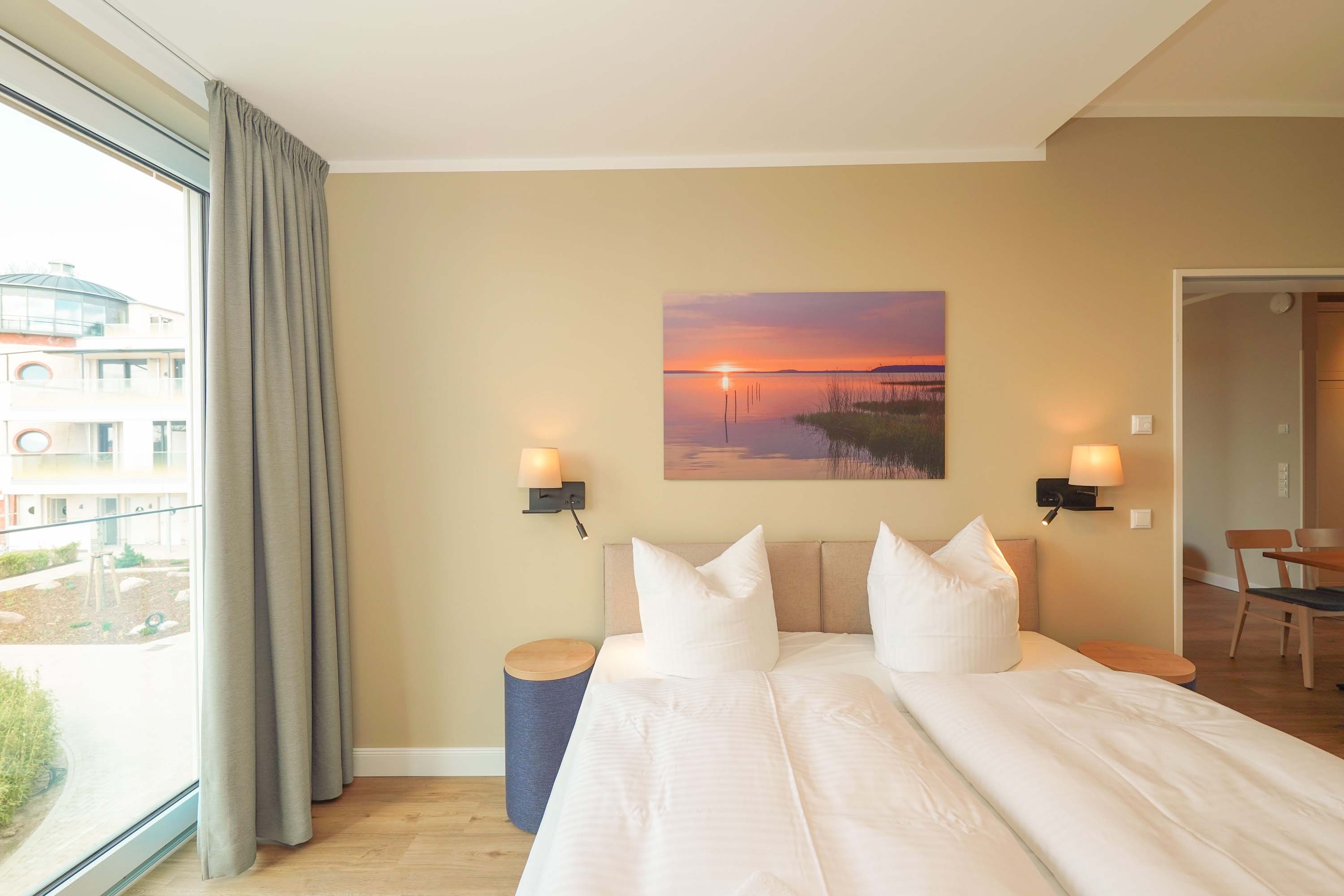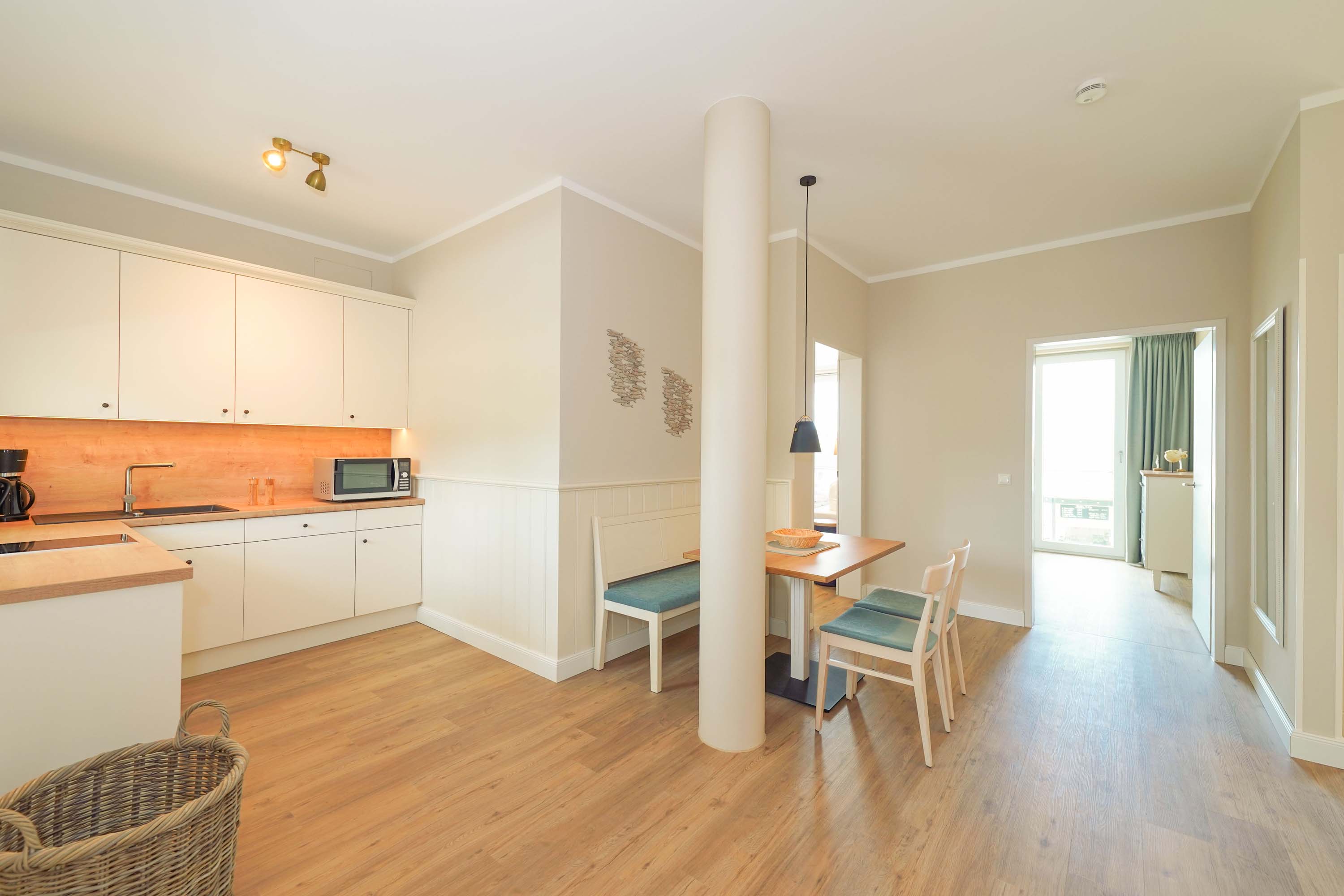 Die Sonnen Suite unserer 2023 eröffneten Appartements „Zum Leuchtturm“ bietet reichlich Platz für zwei Personen. Neben kleiner Küchenzeile und Bad mit Dusche und WC ist sie mit gemütlichen Sitzgelegenheiten, Panoramafenstern, W-Lan und einem Fernseher ausgestattet. Das Schlafzimmer mit Wohlfühlatmosphäre garantiert süße Träume. Besonderes Highlight ist die Dachterrasse mit Blick auf den idyllischen Hafen.