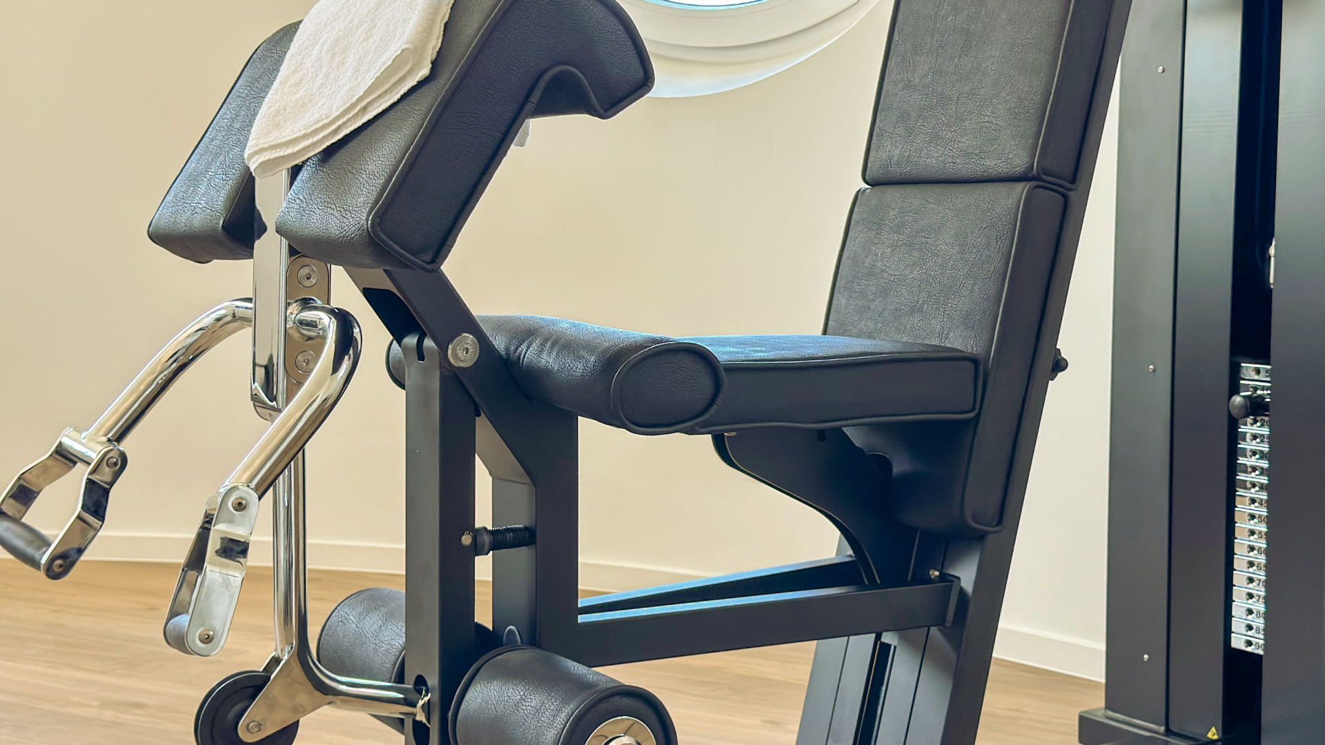 Auf 25 m2 können Sie mit unseren hochwertigen „TechnoGym“-Geräten Ihre Muskeln stärken, ordentlich in die Pedale treten, ein Ganzkörpertraining starten oder auf der großen Yogamatte Kraft für Körper und Geist tanken. Und nebenbei genießen Sie einen wunderbaren Ausblick durchs Bullaugen- Fenster auf den Hafen. Unseren Fitnessbereich finden Sie in der ersten Etage des Leuchtturms.