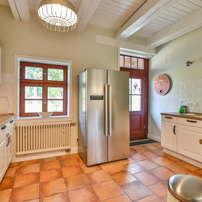 Die Ferienhäusern sind mit einer komplett eingerichteten Küche inkl. Kühlschrank mit Gefrierfach, Toaster und Mikrowelle ausgestattet.