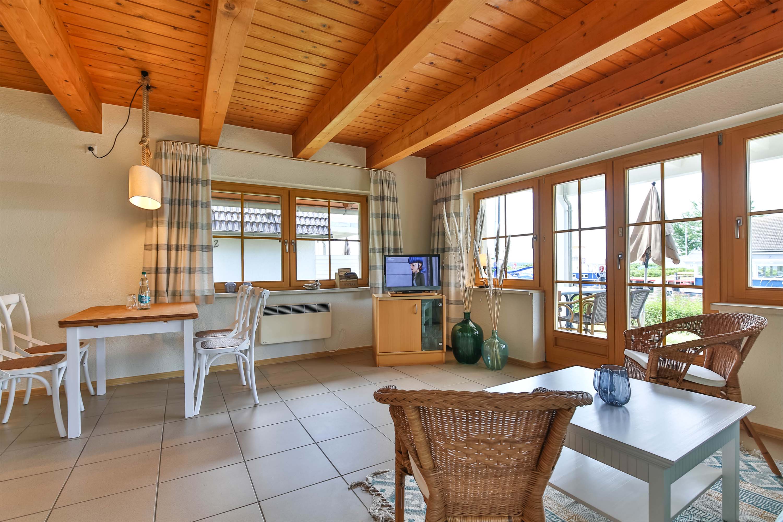 Als Selbstversorger können Sie frische Brötchen und Frühstückszutaten in unserem Dorfladen am Hafen einkaufen, in Ihrer Küchenzeile zubereiten und gemütlich auf der Terrasse genießen. Zur Abwechslung gibt es die Möglichkeit, gegen Aufpreis am Frühstücksbuffet in unserem gegenüberliegenden Restaurant teilzunehmen. Das Frühstücksbuffet findet täglich zwischen 08:00 und 10:00 Uhr statt. Ein Zubuchung ist jederzeit möglich.