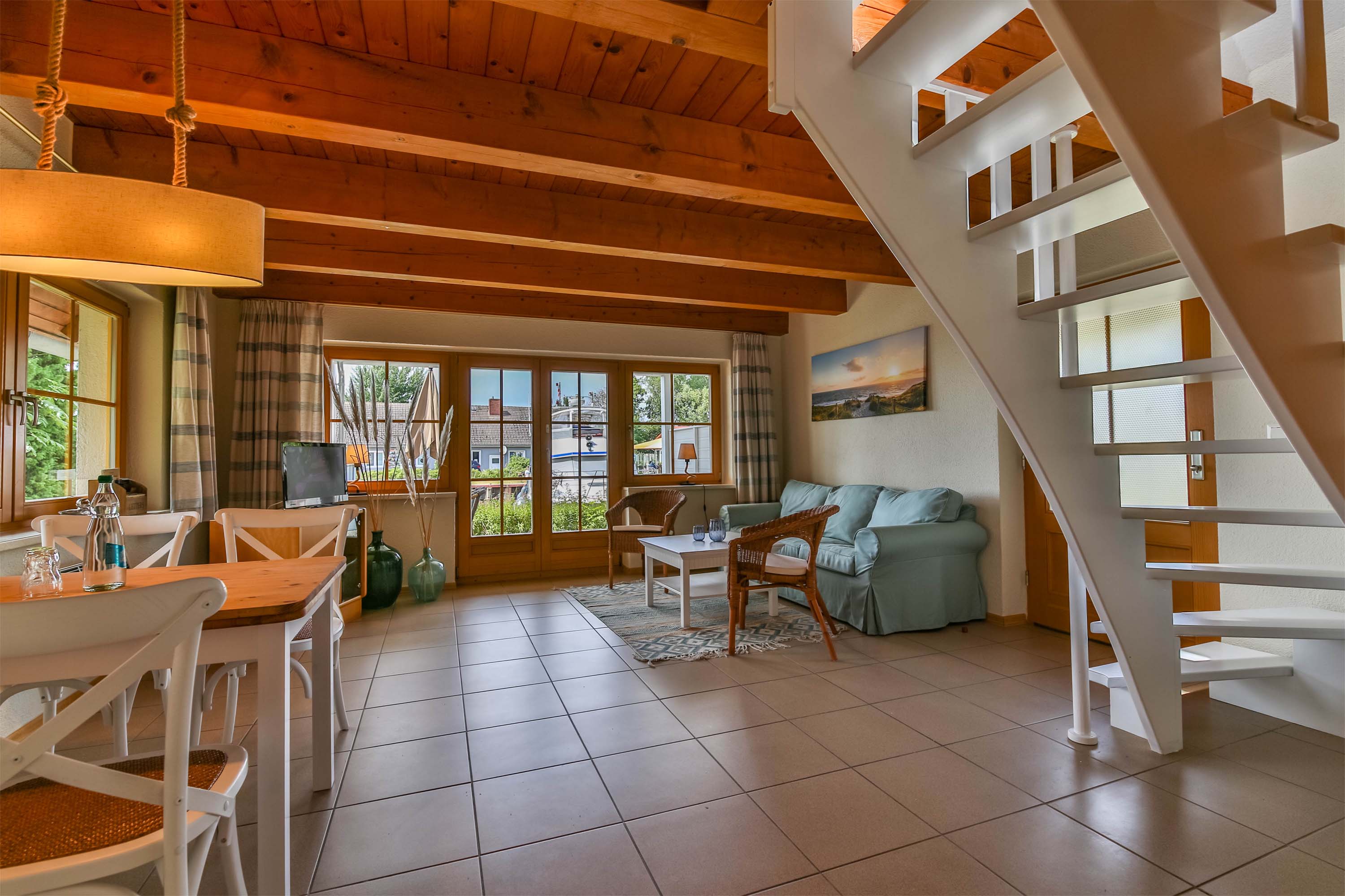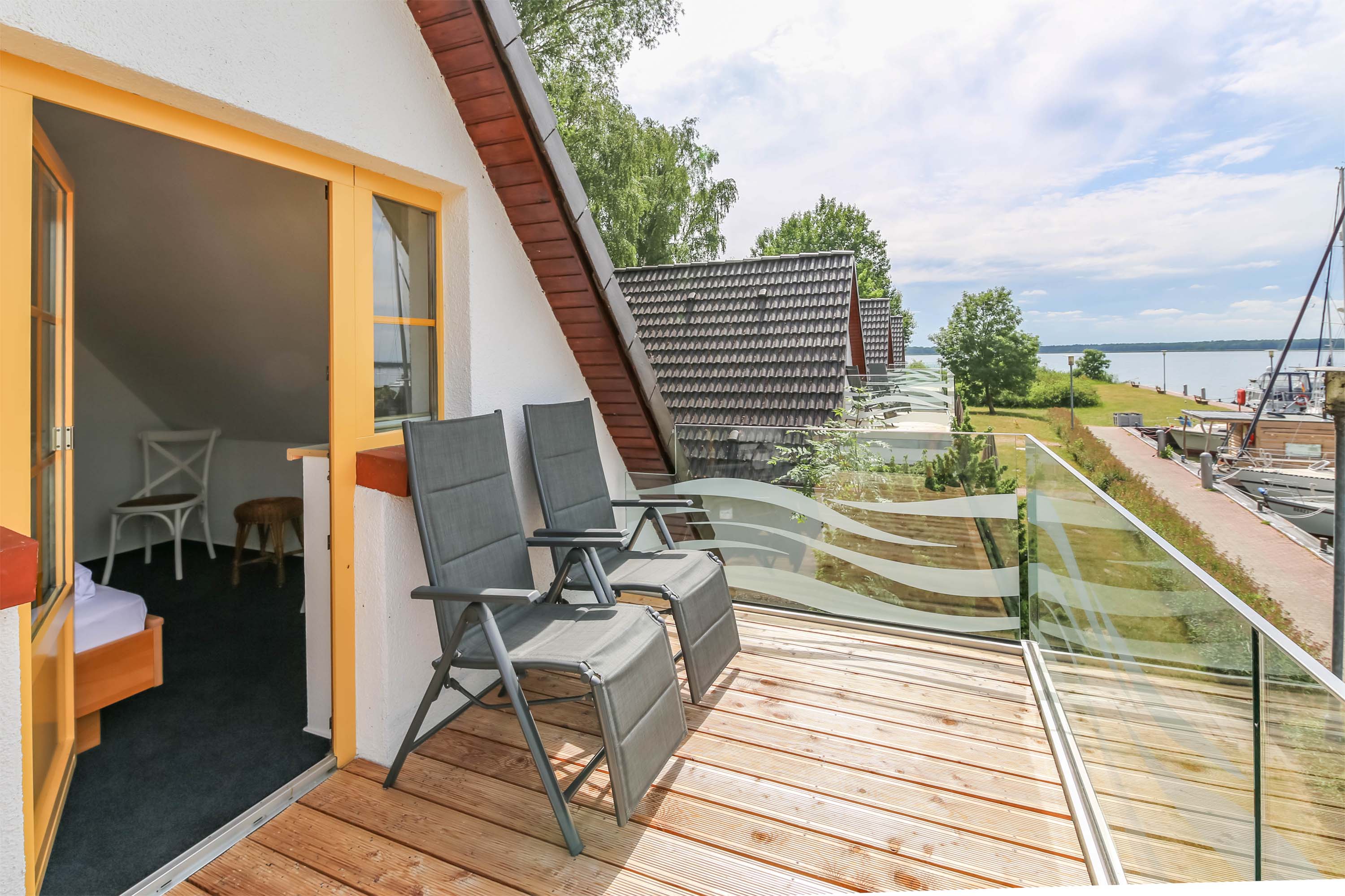 So wunderbar nah am Wasser gebaut, um reine Urlaubsfreude auszulösen. Unsere komfortablen Ferienhäuser „Buhne 1 bis 3“ finden Sie direkt am idyllischen Hafen Rankwitz. Eingerichtet mit maritimem Charme, ausgerichtet für den weiten Blick über den Peenestrom. Die drei großzügigen Ferienhäuser bieten Platz für jeweils bis zu 4 Personen. Auf 42 qm erwartet Sie pure Wohlfühlatmosphäre – im Erdgeschoss mit kleiner Küchenzeile, ebenerdiger Dusche, WC, einem geräumigen Wohnzimmer sowie einer Terrasse mit freier Sicht auf den Hafen. Die gleiche schöne Aussicht haben Sie vom Balkon im Obergeschoss, wo zwei kuschelige Schlafzimmer zum Träumen einladen.